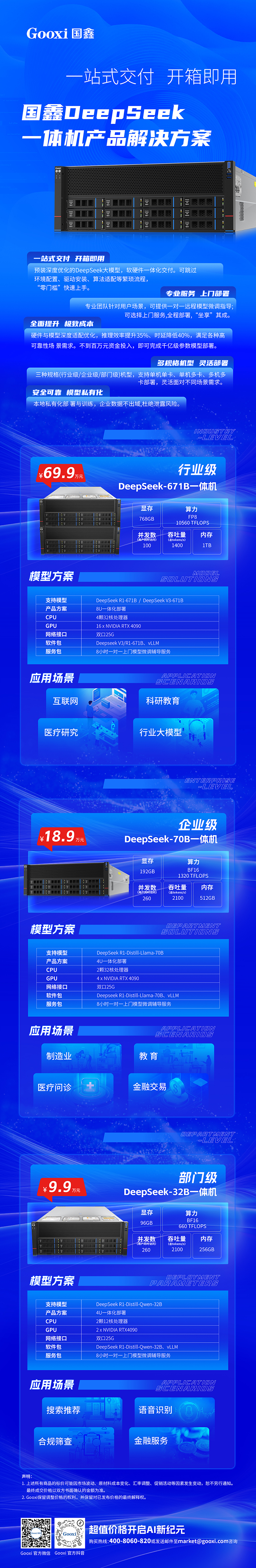Gooxi 基于DeepSeek、llama2/3大模型实测验证,9728太阳集团服务器在千亿参数级模型推理场景中效率最高能获得35%的提升,TCO(总体拥有成本)降低近30%。这一成果不仅刷新了国产服务器在AI算力领域的性能标杆,也意味着9728太阳集团为大模型厂商的大模型推理的‘最后一公里’提供了关键助力。